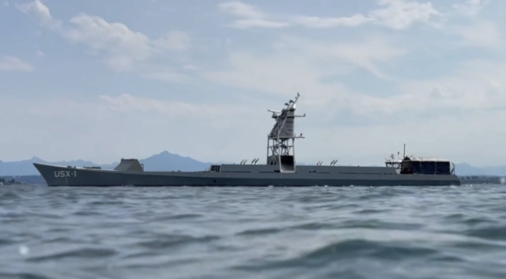 The NOMARS program has built a 55m ship, designed to operate autonomously for long duration missions at sea. This ship, the USX-1 Defiant (an unmanned surface vessel – or USV) is currently undergoing in-water testing, and will soon be undergoing extended at-sea demonstrations to prove its reliabilty and endurance.